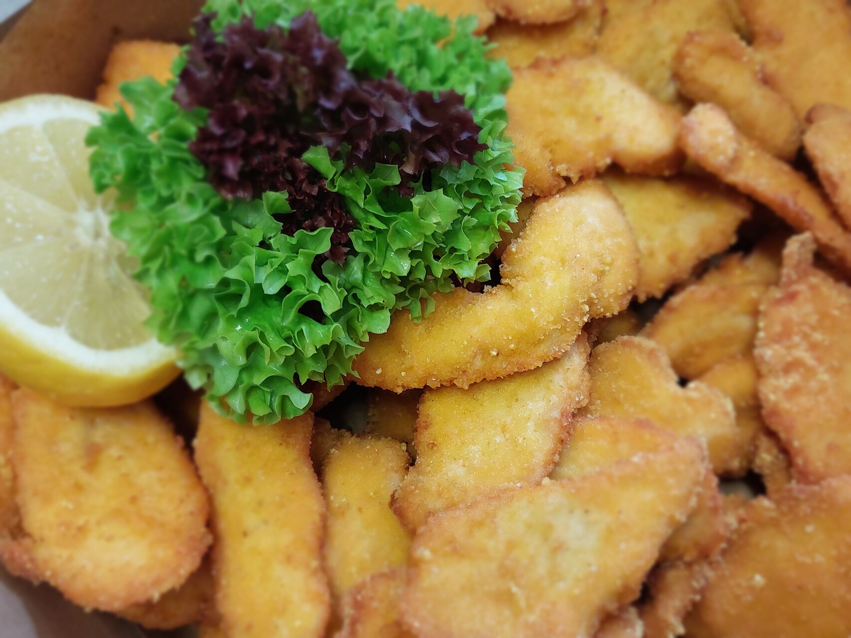 Kuřecí řízky marinované v zakysané smetaně, obalené v kukuřičné strouhance a dozlatova smažené na vepřovém sádle. Stará dobrá klasika, která zachutná všem a nikdy neomrzí.